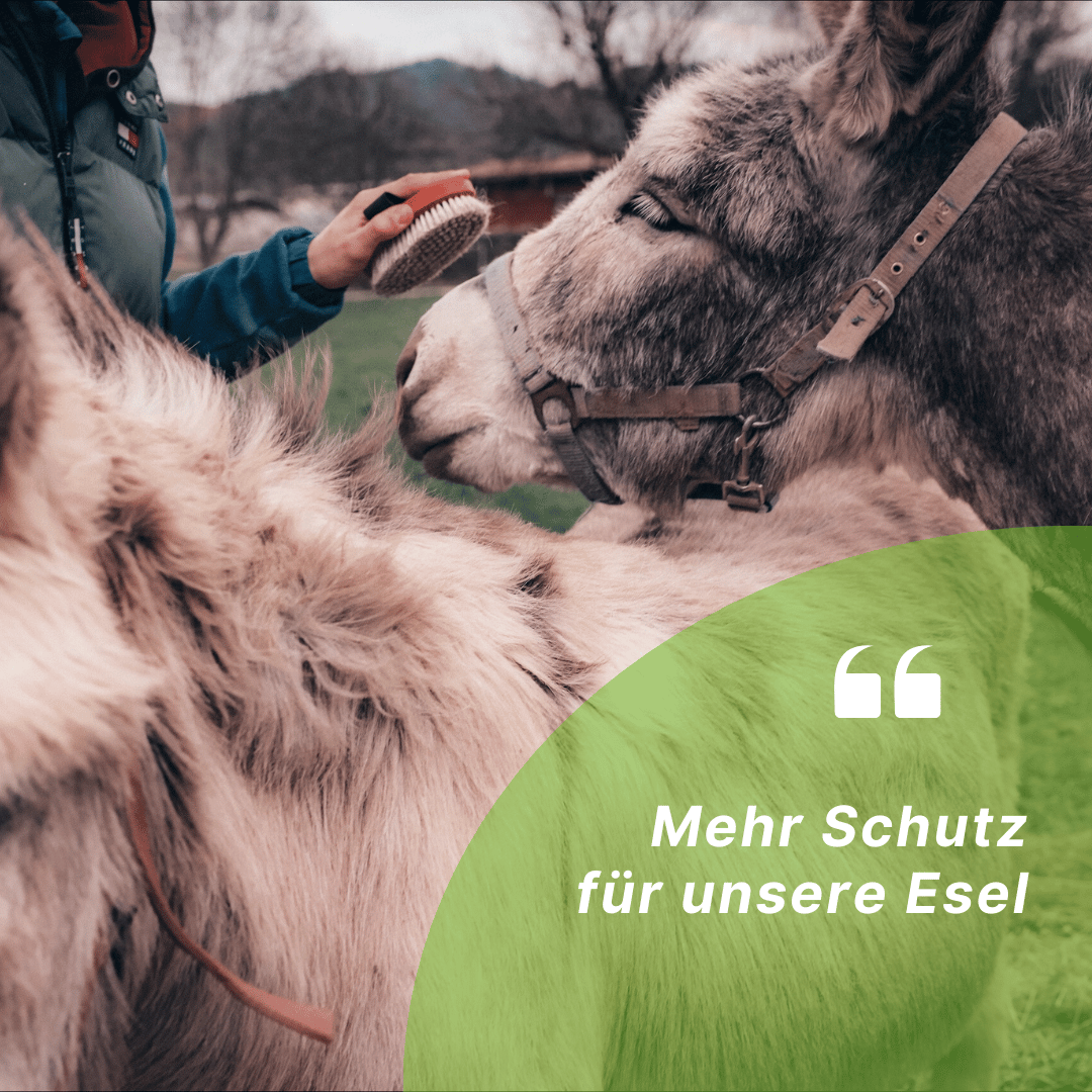 Damit es ihnen draußen auf der Weide noch besser geht, möchten wir einen mobilen Unterstand anschaffen. So haben die Esel Schutz vor Sonne, Regen und Wind – und der Unterstand kann flexibel je nach Weidefläche versetzt werden.