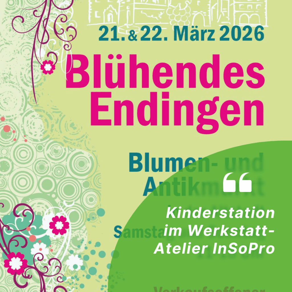 Am 21. und 22. März 2026 findet in Endingen am Kaiserstuhl wieder das beliebte Blühende Endingen statt – mit Antikmarkt, verkaufsoffenem Sonntag und vielen Blumenaktionen. Wir freuen uns sehr, dieses Jahr mit unserer Kinderstation im Werkstatt-Atelier InSoPro dabei zu sein!